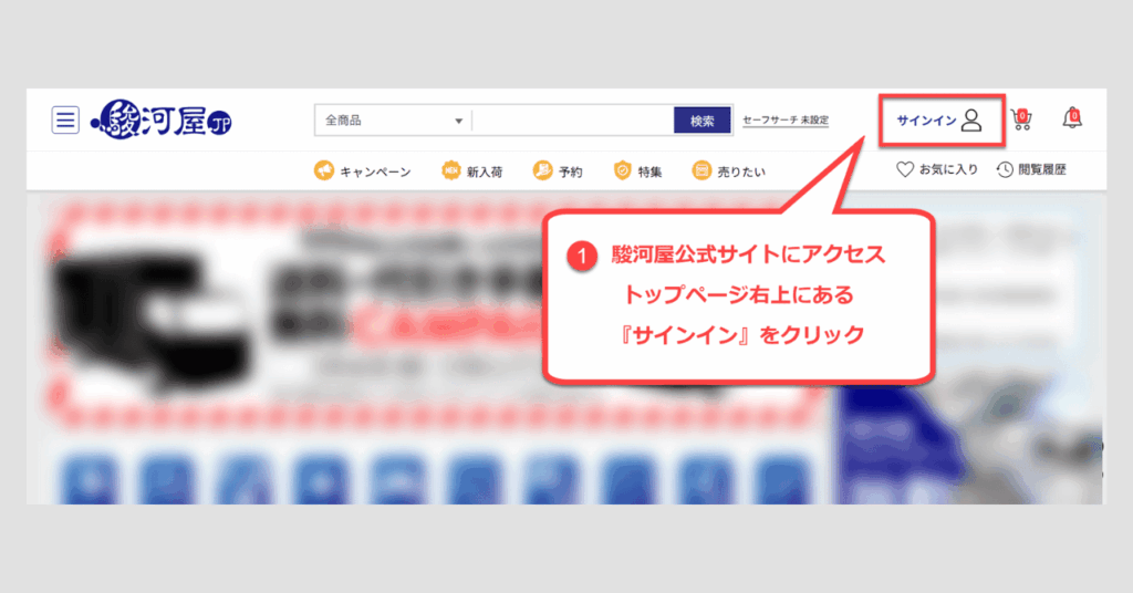 1.まずは、駿河屋の公式サイトにアクセスします。