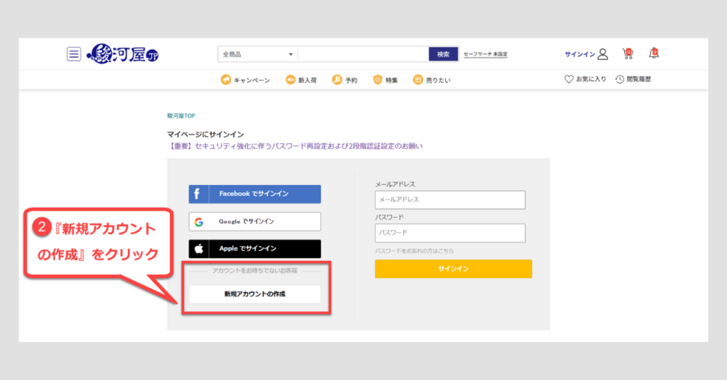 駿河屋の公式サイトのログイン方法は、以下になります。