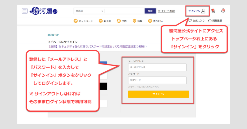 駿河屋公式サイトのログイン方法